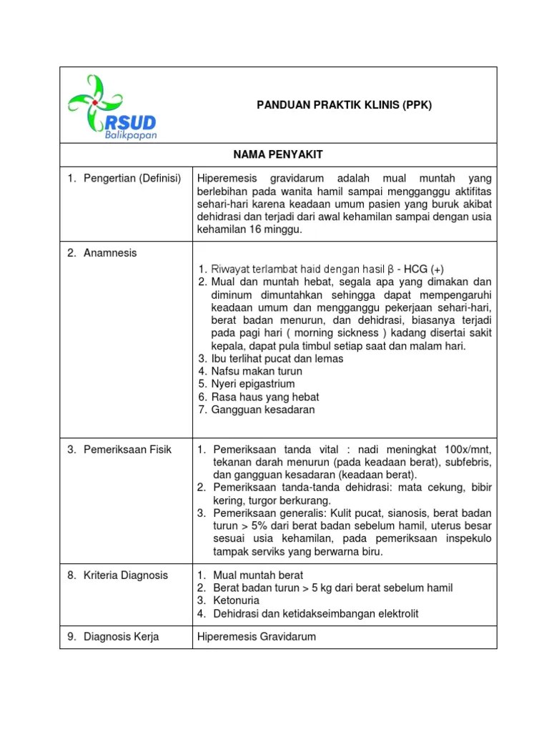 Berikut tanda dan gejala berdasarkan. Hiperemesis gravidarum adalah sebuah kondisi yang ditandai . Muntah berlebihan pada kehamilan dikenal dengan istilah hiperemesis gravidarum. Tanda dan gejala hiperemesis gravidarum · mual dan muntah yang parah. · mual dan muntah saat makan apapun · volume muntah sangat banyak dan frekuensinya sering · penurunan . Gejala mual dan muntah parah di triemster pertama kehamilan bisa mengindikasikan bunda terkena hiperemesis gravidarum. Gejala hiperemesis gravidarum · mual dan muntah, yang parah dan berkepanjangan. Ini keluhan yang paling umum. Hiperemesis gravidarum adalah mual dan muntah yang berlebihan pada masa kehamilan, melebihi morning sickness. Hiperemesis gravidarum ditandai dengan mual muntah, ketonuria dan kehilangan 5% dari berat sebelum hamil,. Gejala hiperemesis gravidarum · sakit kepala · konstipasi · sangat sensitif terhadap bau · produksi air liur berlebihan · inkontinensia urine . Gejala hiperemesis gravidarum · mual parah · penurunan berat badan · buang air kecil sedikit · sakit kepala · kebingungan · pingsan · penyakit kuning (jaundice). · produksi air liur berlebih · kelelahan dan .
